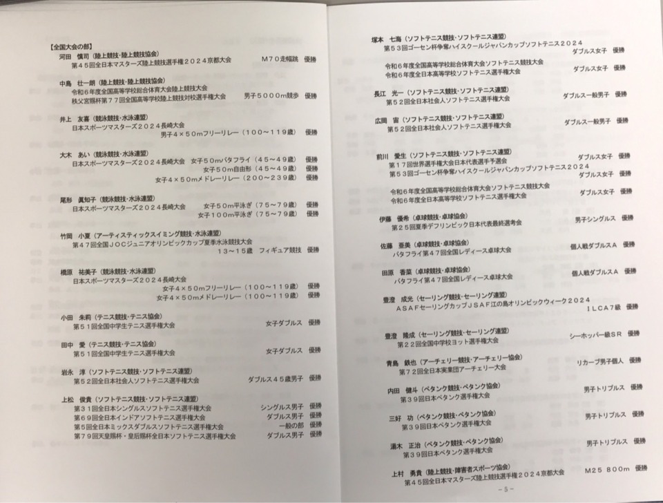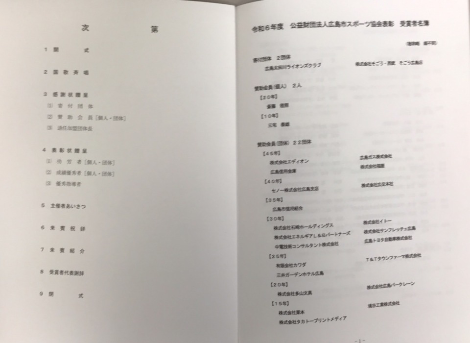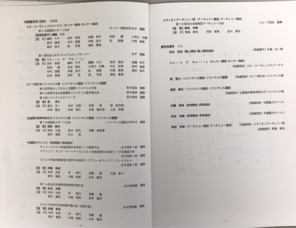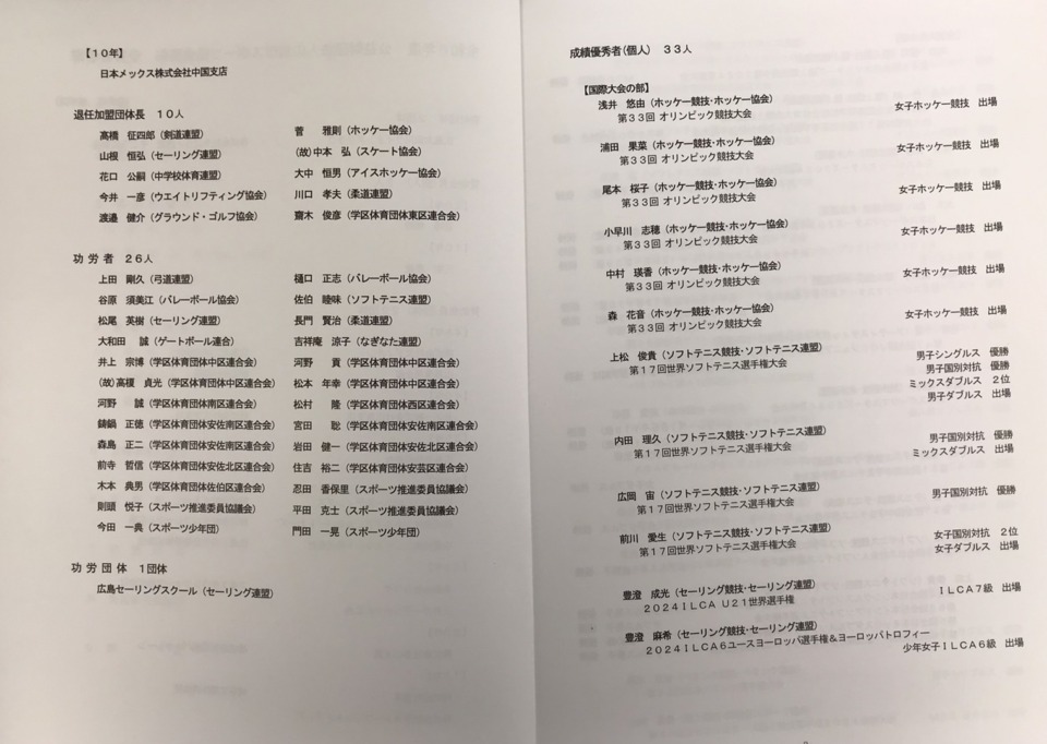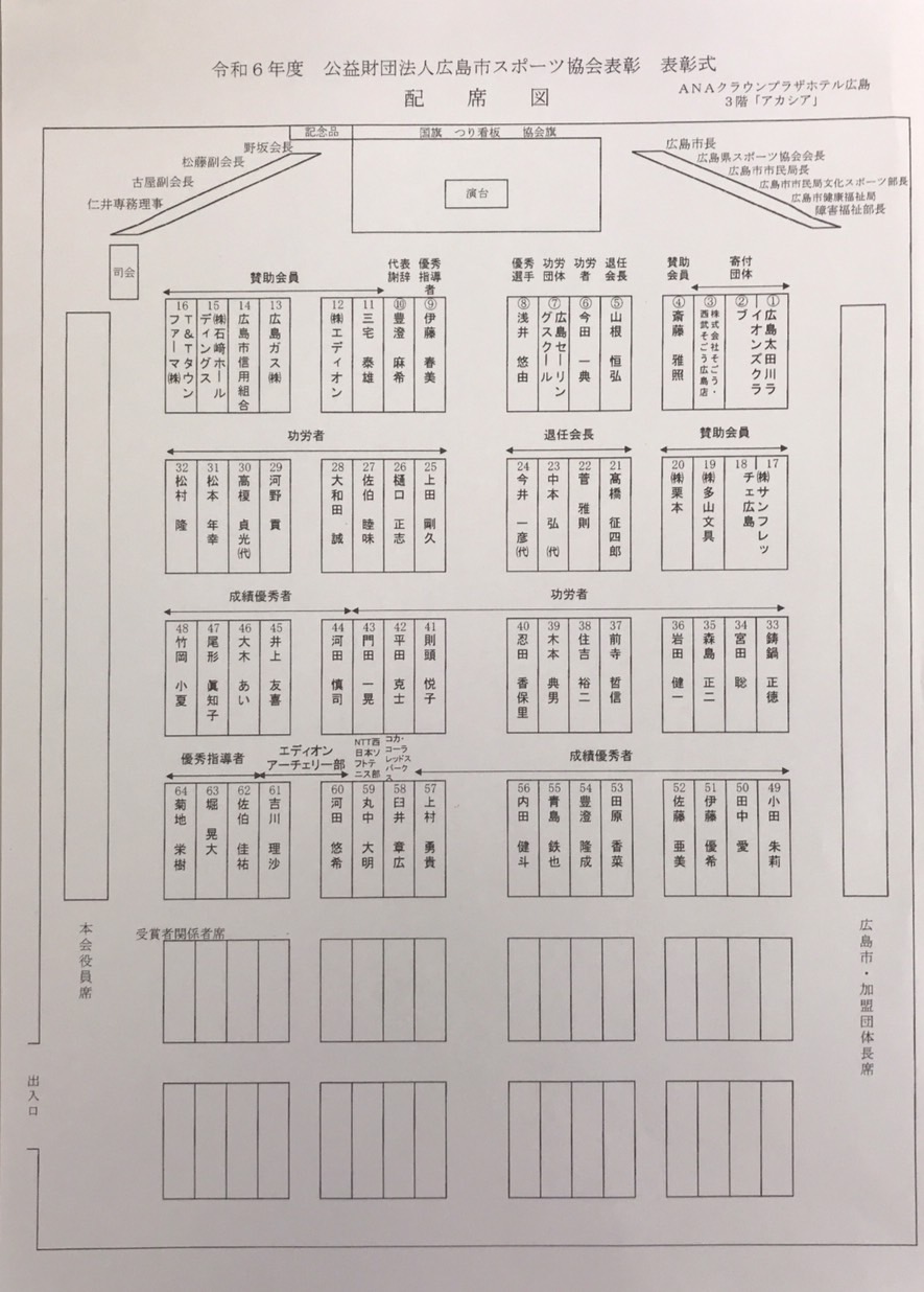 会 場 / ANAクラウンプラザホテル広島 3階「アカシア」 表彰式 / 17:30~18:10 ※※※※※※※※令和6年度※※※※※※※※ 公益財団法人広島市スポーツ協会表彰 表 彰 式