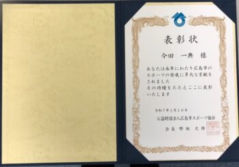 写真)株式会社ユニバーサル 代表取締役 今田 一典 功労者 26名の代表として表彰状を受け取る。